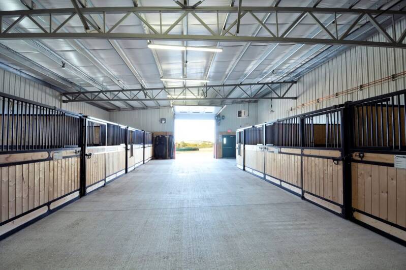 The north barn offers 27 10' x 10' stalls complete with rubber mats. The barn is heated and well ventilated to ensure a healthy and comfortable environment for your horse. Equipped with One wash bay and one temporary tack room.