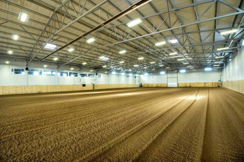 We offer a 115 x 230 indoor arena, watered and groomed on regular basis with our KISER Dragmaster. The riding arena is equipped with radiant heat providing a consistent comfortable riding and viewing experience. Bleacher seating is offered for your closest indoor activity and learning experience.